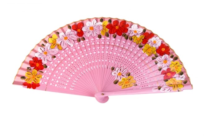 Abanico de madera pintado a mano, y terminado en alta calidad.