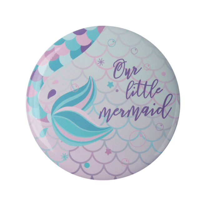 Espejo chapa con diseño de cola de sirena con escamas de colores.