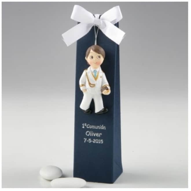 Imán Comunión niño almirante blanco caja azul, 3 peladillas. PEDIDO MÍNIMO 12 UNIDADES El precio no incluye la grabación de la caja.