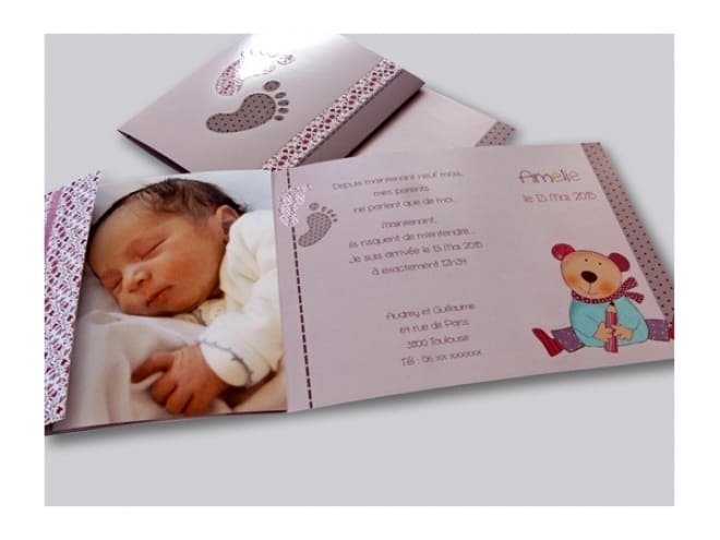 Invitación de bautizo en la que se puede incluir la foto del bebé, en tonos muy cálidos con las huellas de los pies dibujadas sobre la portada.