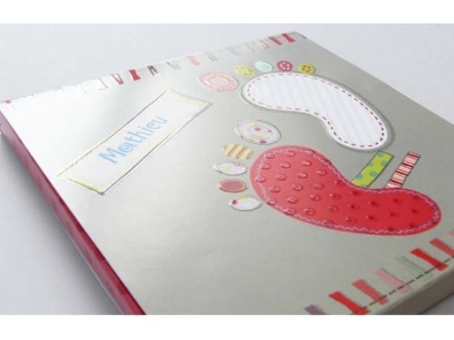Invitación de bautizo divertida con las huellas de los pies en la portada. En forma de caja.