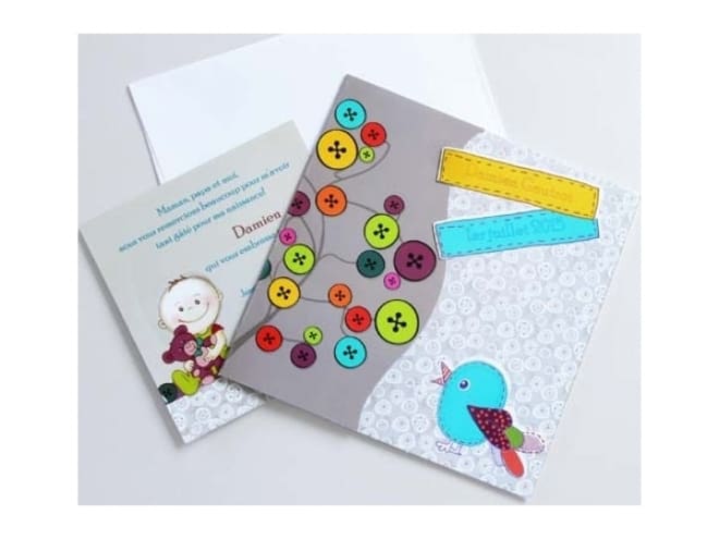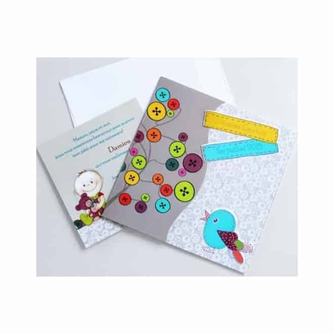 Invitación de bautizo con la que harás las delicias de los más pequeños gracias a la variedad de colores y el gracioso pajarito.