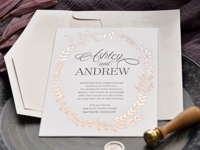 Invitación de boda original que representa el fuerte círculo de nuestro amor. Vuestros invitados quedarán impresionados ante la delicadeza y sofisticación de la misma. Fabricada en papel de alta calidad con fibra de algodón de 600g aproximadamente. Esta invitación sólo se puede imprimir con impresión Letterpress. Vuestros nombres se imprimirán en dorado con la técnica de impresión al calor. Los sobres están hecho a mano y fabricados con fibra de algodón. Tenéis la opción de incluir los sellos para los sobres y también los forros del mismo.