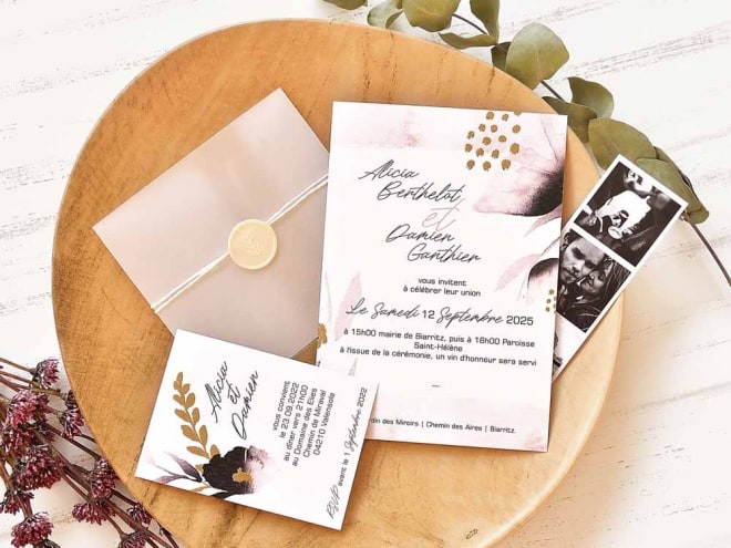 Dentro del sobre incluiremos la invitación montada y las fotos.