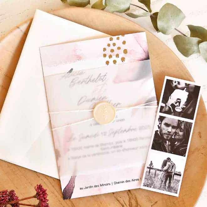 El precio incluye: invitación, fotos, cuerda, sello y sobre.