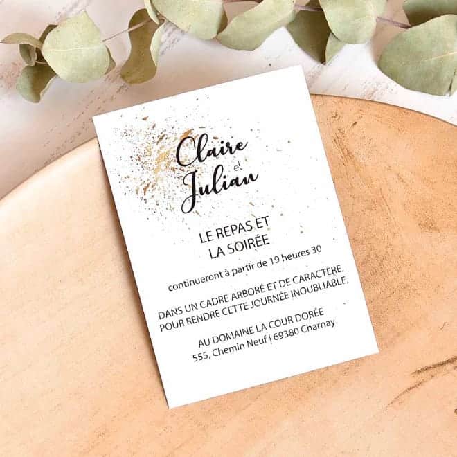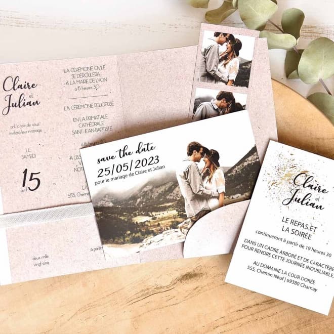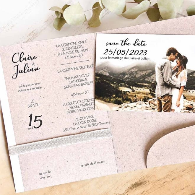 El precio incluye: invitación, lazo y fotos. La tarjeta de confirmación se vende a parte.
