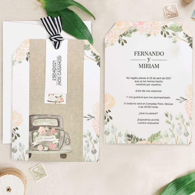 INVITACIÓN DE BODA 39727 COCHE DE NOVIOS