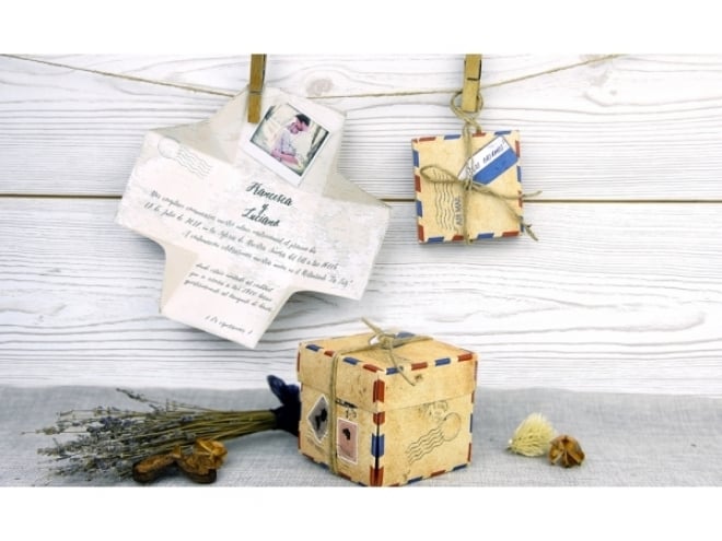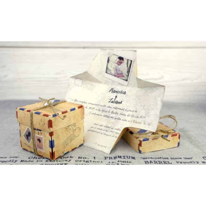 Invitación de boda caja vintage 32521