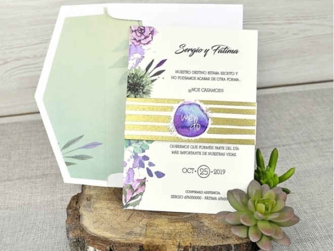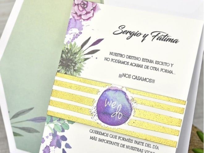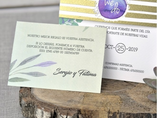 El precio incluye: invitación, lazo y sobre. (NO incluye el forro, se cobra a parte, son 0'34 euros cada uno)