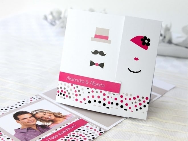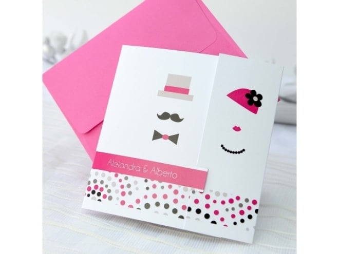 Invitación de boda trajes novios 34951