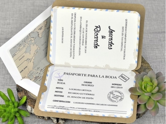 El precio incluye: sobre blanco (NO incluye el forro del mapa del mundo, se cobra a parte, son 0'34 euros cada uno), exterior marrón y tarjeta interior.