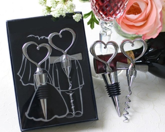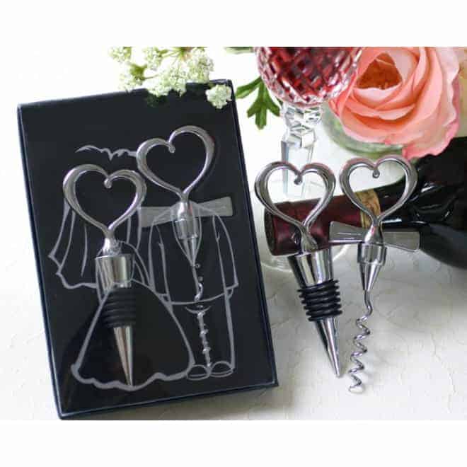 El set está compuesto por un tapón para botellas y sacacorchos en forma de corazón.