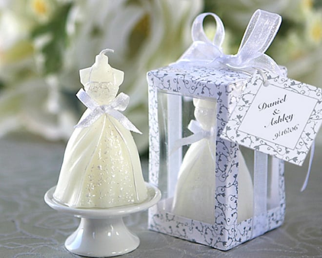 Vela vestido novia en caja adornada